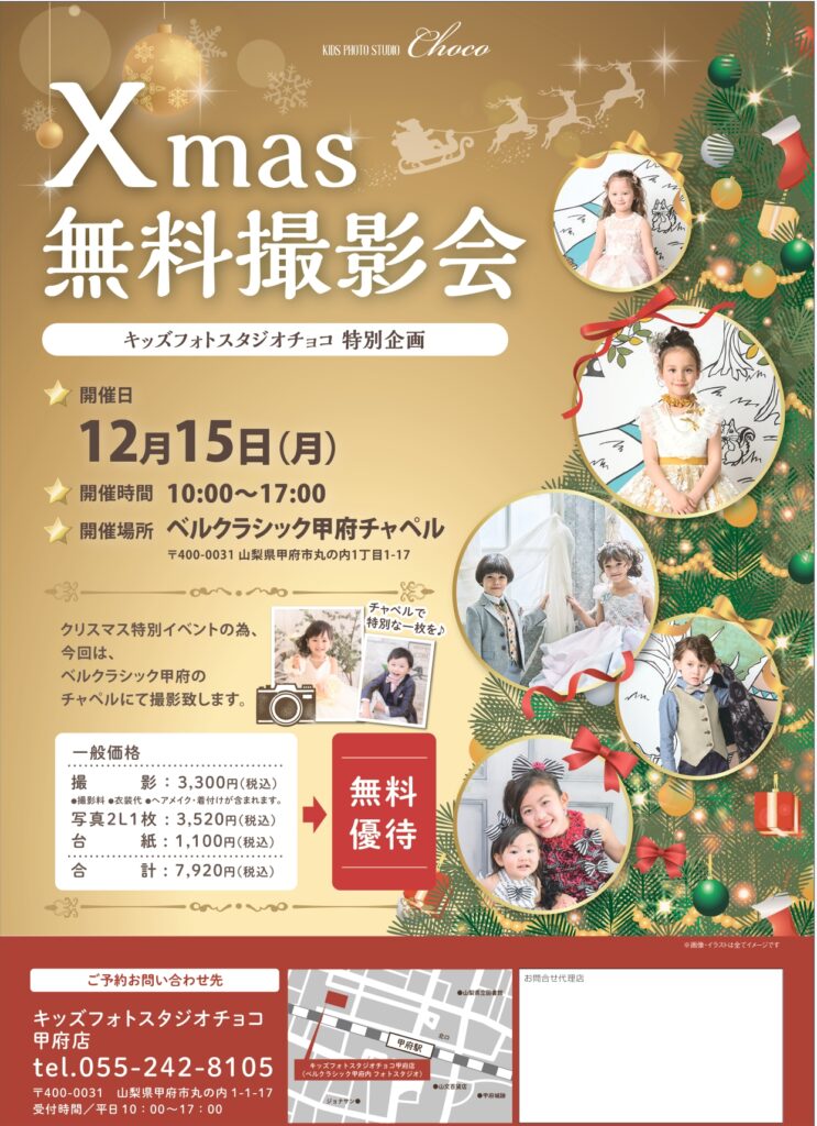 キッズフォトスタジオチョコでは、0~13才のお子様を対象に【無料撮影会】を実施しております。